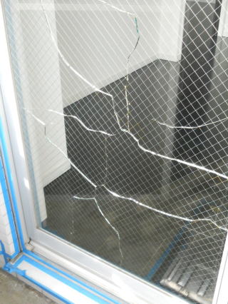 熱割れした掃き出し窓ガラス