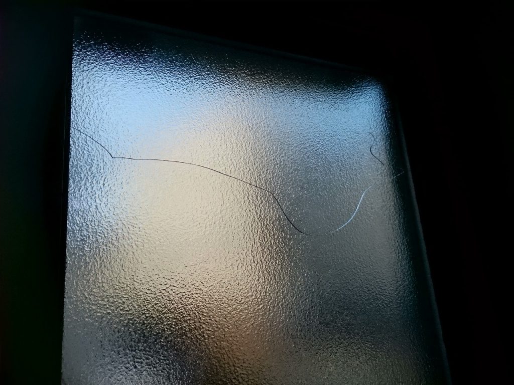 ガラスが割れた原因は経年劣化によるサビ割れと温度差による熱割れと思われます