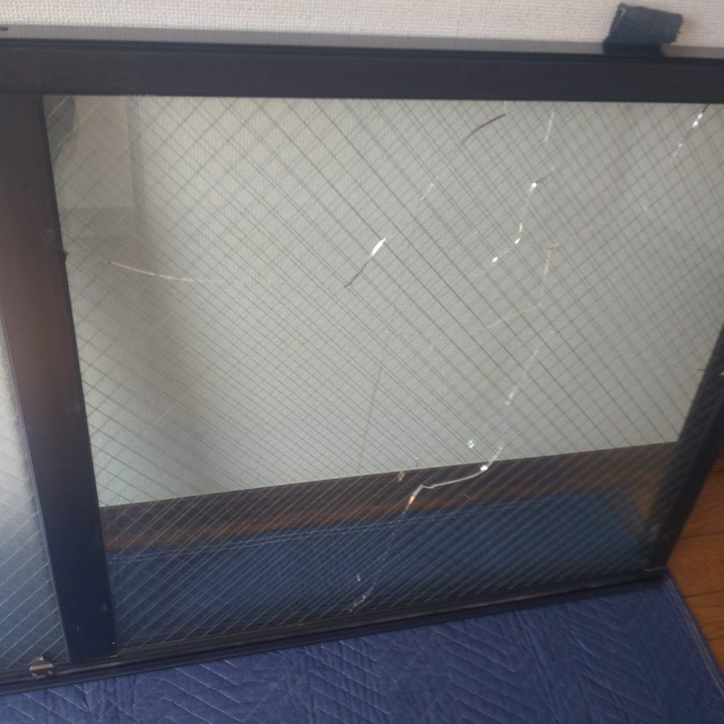 ガラスが割れた原因はサビ割れと温度差による熱割れかと思われます