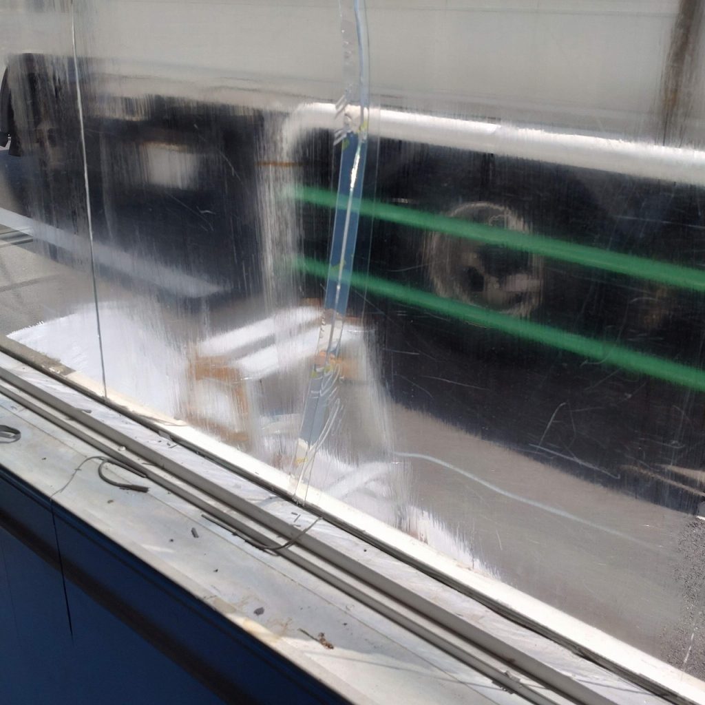ガラスの重量が70㎏くらいですので4人の施工させて頂きました