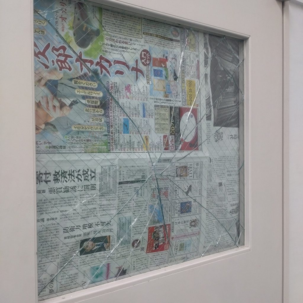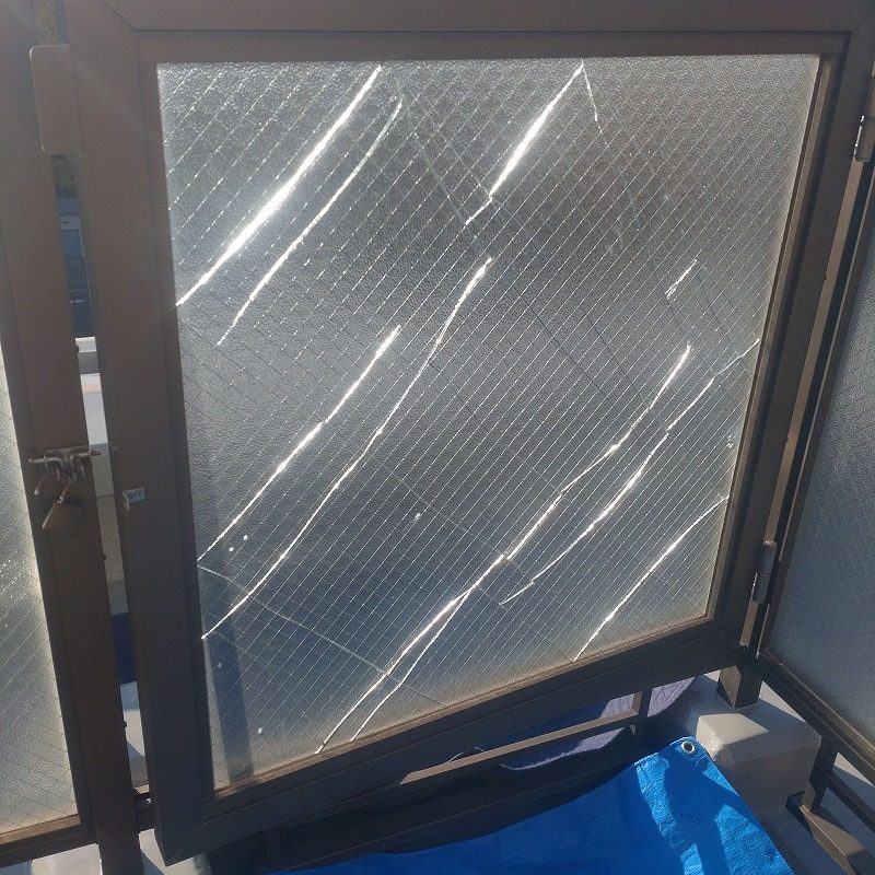 強風で扉が開いてしまい割れてしまいました