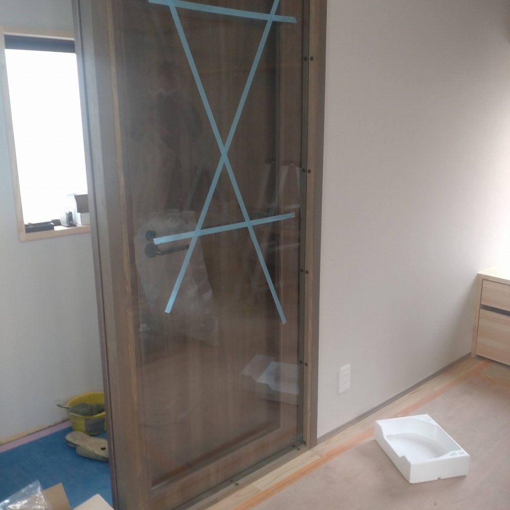 ガラス修理交換場所は部屋間仕切り木製引き戸になります