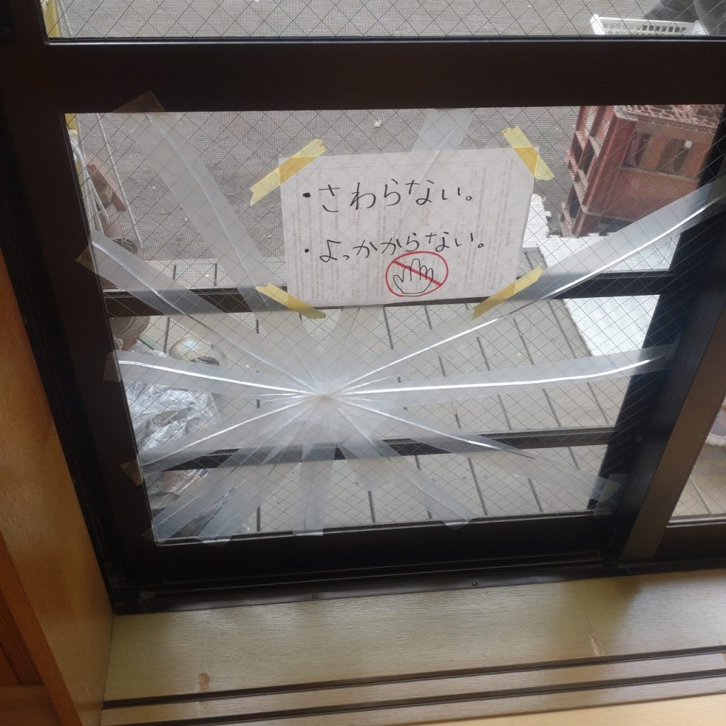 ガラス修理交換場所は腰高窓ガラスになります