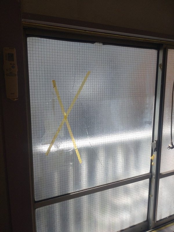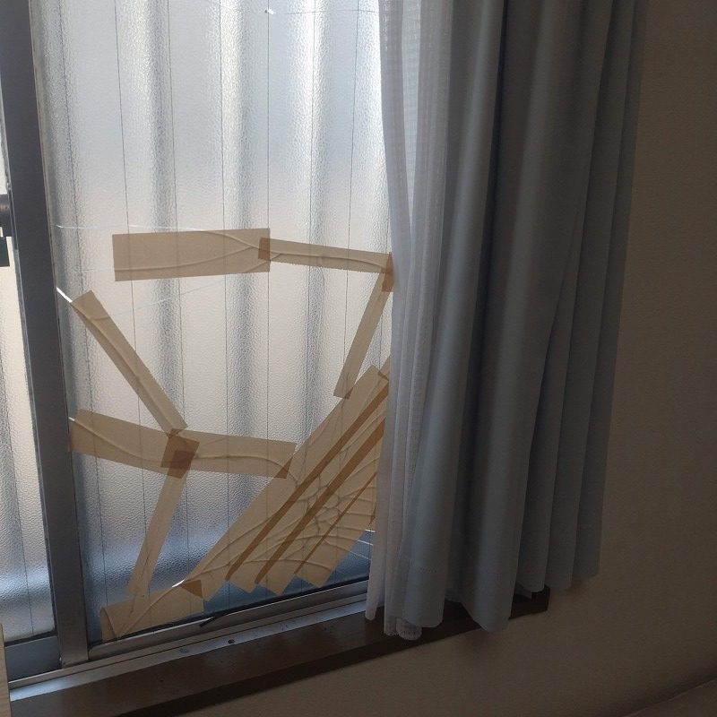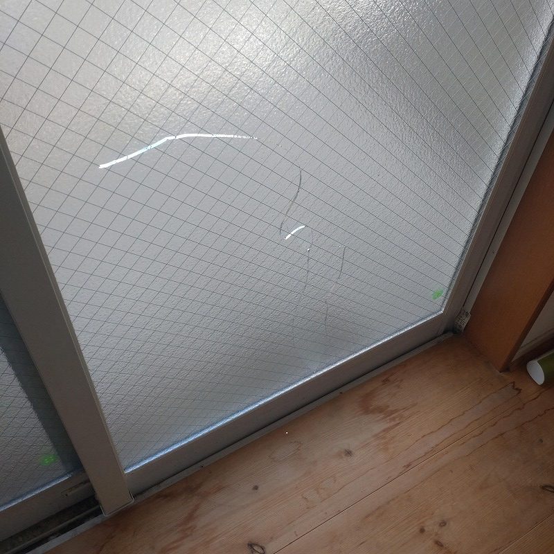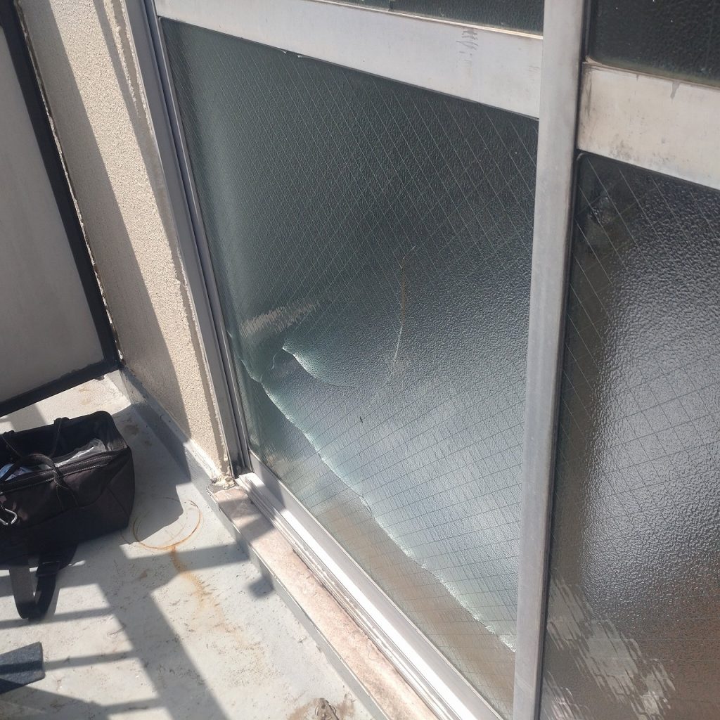 ガラス修理交換場所はアパートの掃き出し窓になります