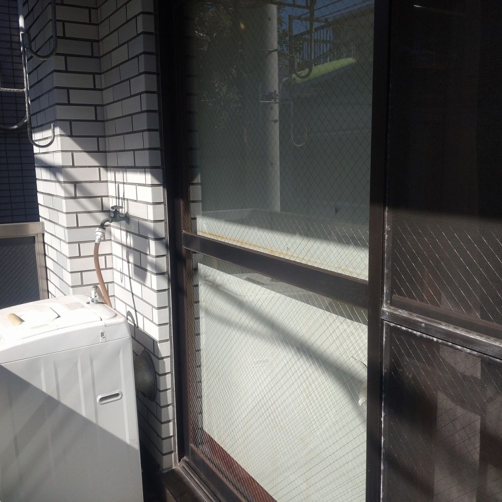 ガラス修理交換場所はマンション1階の腰高窓回転窓になります