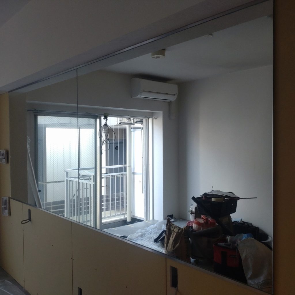 壁面に鏡の取付けになります