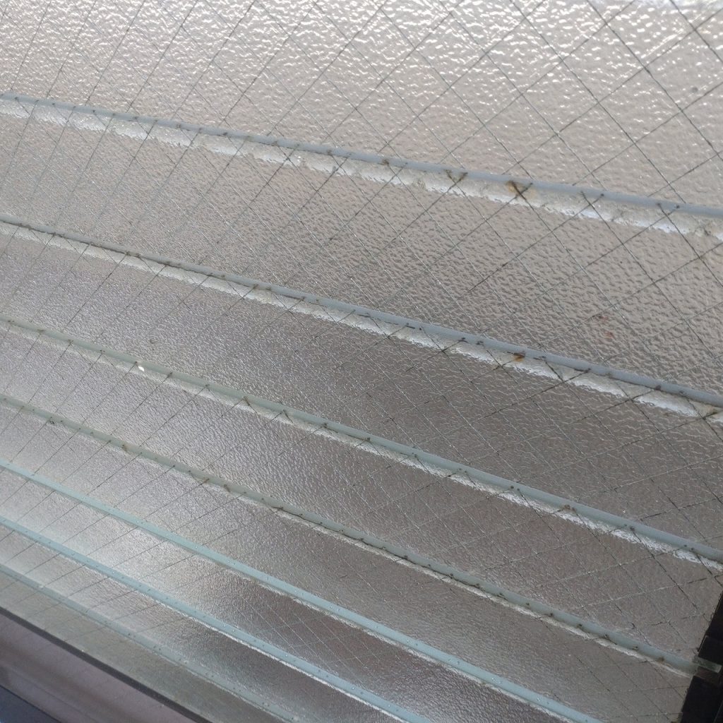 ガラス種類 菱形網入り透明ガラス→5㎜パイロクリアNSG(耐熱強化ガラス)