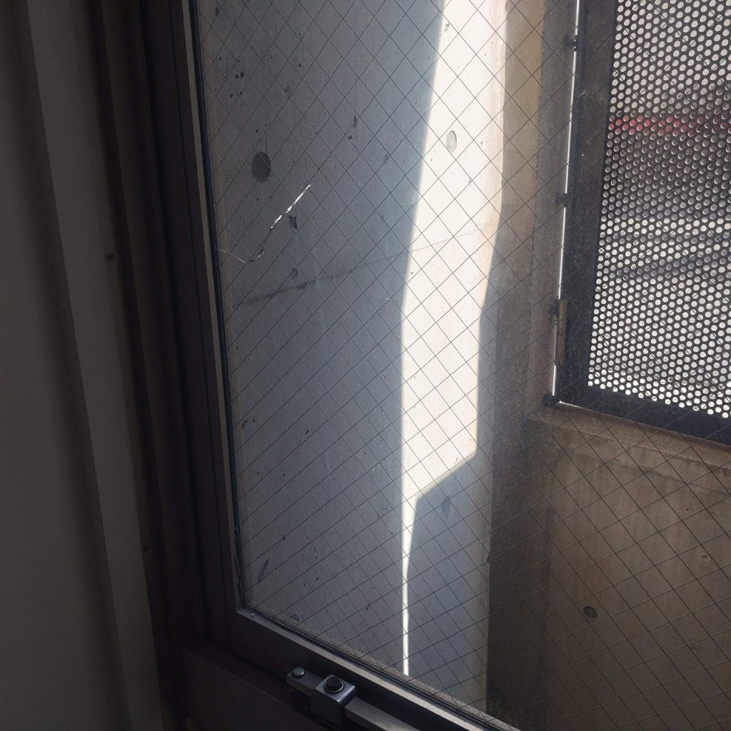 ガラス修理交換場所はマンションの腰高窓になります