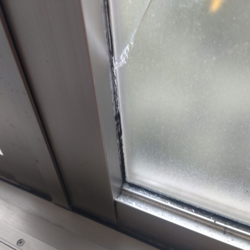 サッシガラス廻り ダークブラウンコーキング施工
