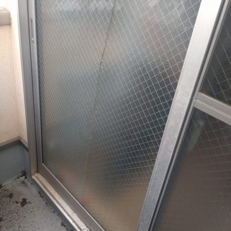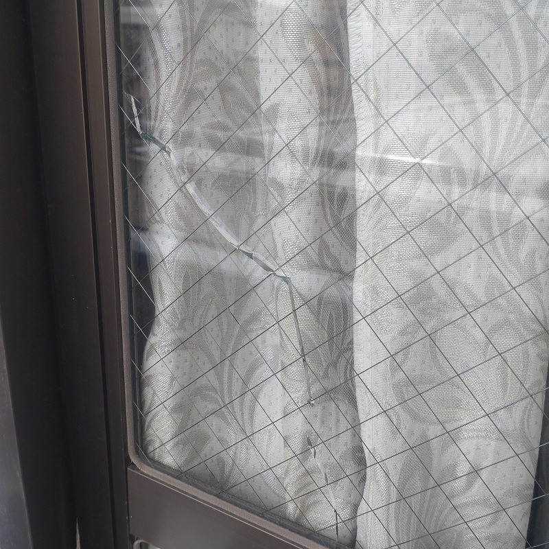 ガラスが割れた原因は物がぶつかって割れたと思われます