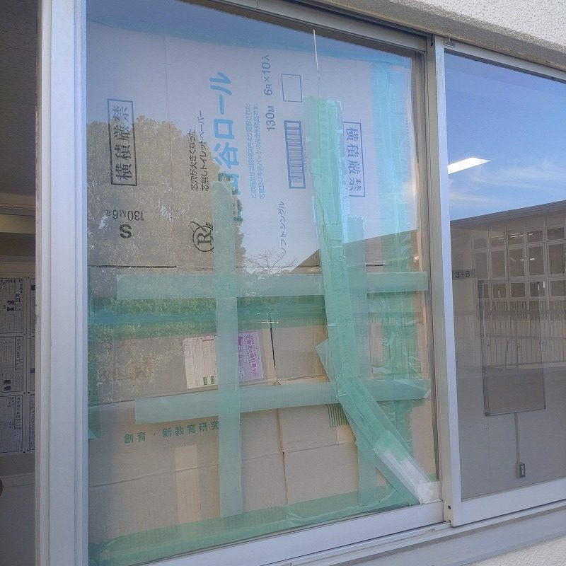 ガラス施工したのちに外側に飛散防止フィルム貼り施工しました