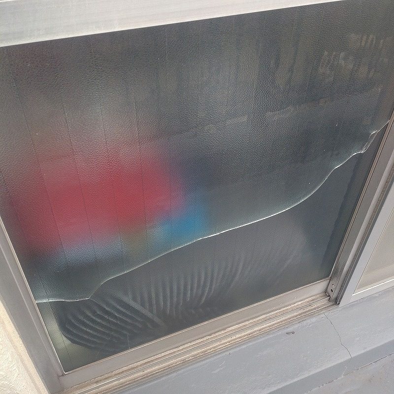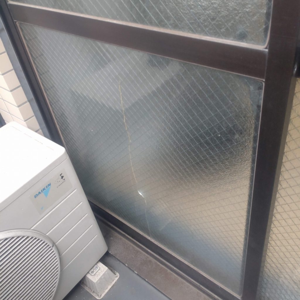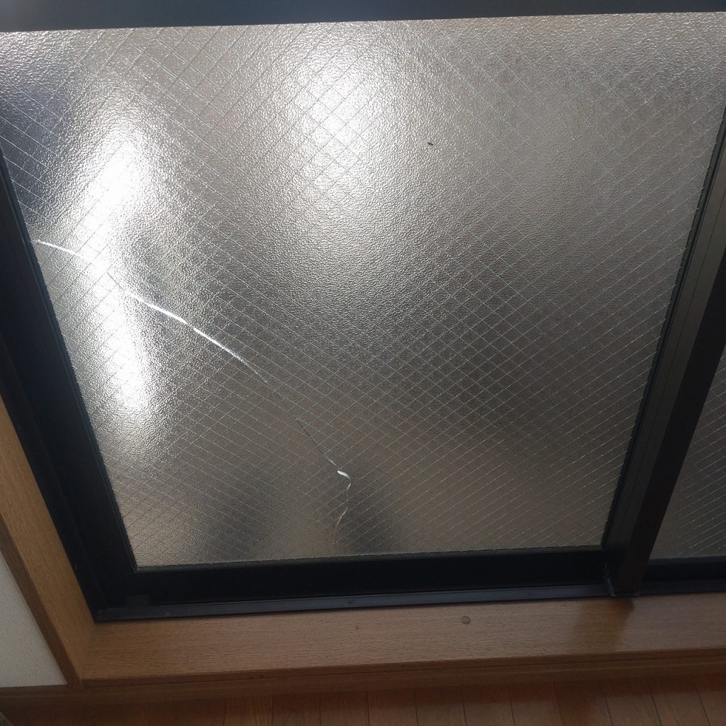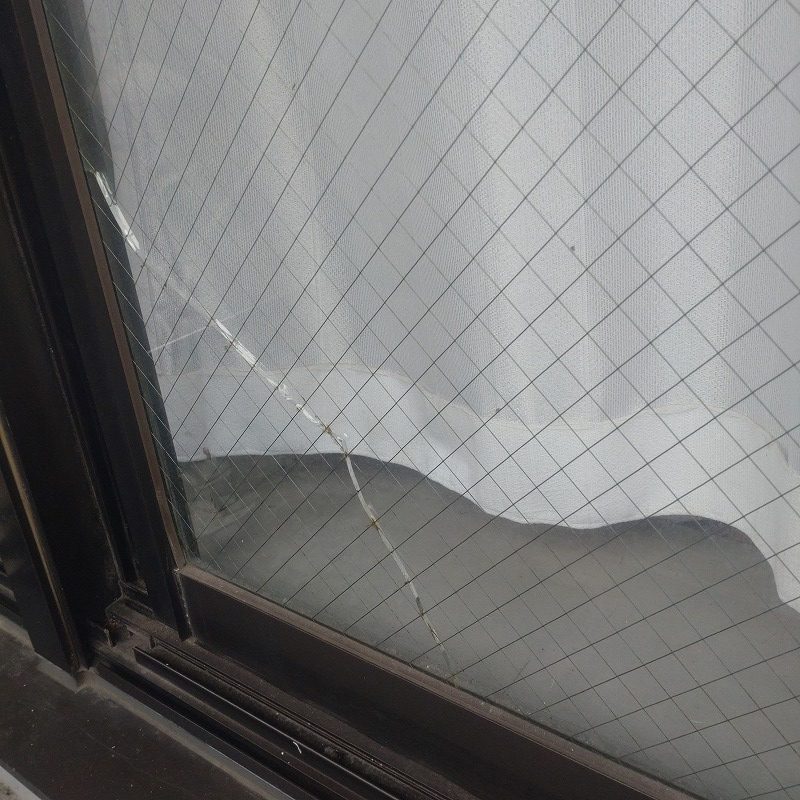 窓ガラスが割れた原因が熱割れでしたので菱形網入り透明ガラスからマイボーカガラスへの交換となりました