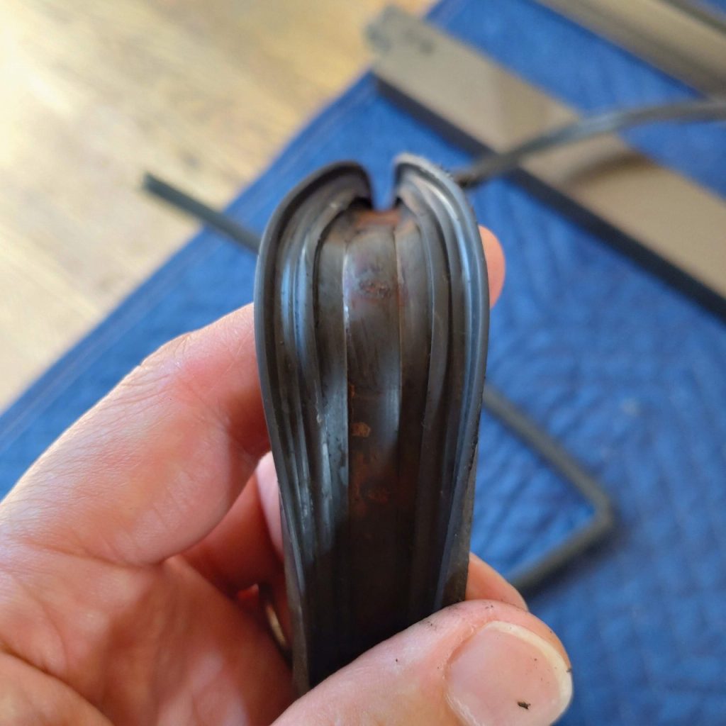 サッシガラス廻りは既存のグレチャンをサビをふき取りした後に再利用しました