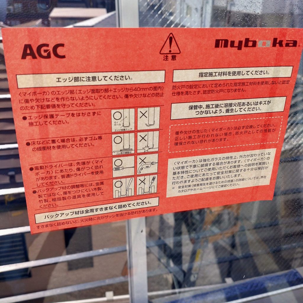 割れた原因が温度差による熱割れでしたので菱形網入り型板ガラスから耐熱強化ガラス AGCマイボーカガラスへの交換となりました